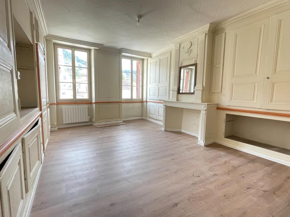 Centre-ville Nantua, appartement T2 bis entièrement rénové de 85,25 m² situé au 3ème étage avec vue dégagée et bonne orientation. Il se compose d'une cuisine équipée ouverte sur un salon-séjour, d'une grande chambre avec une pièce en enfilade à usage de dressing ou d'une chambre. Une salle de douche, un wc. Consommation énergétique: F; 116 000 € à la charge du vendeur; Coordonnées négociateur : Nathalie LUKAC, Mobile : 06 11 93 90 79, Email : nathalie.lukac@cbj.notaires.fr; Bien vendu soumis au statut de la copropriété Les informations sur les risques auxquels ce bien est exposé sont disponibles sur le site Géorisques : www. georisques. gouv. fr