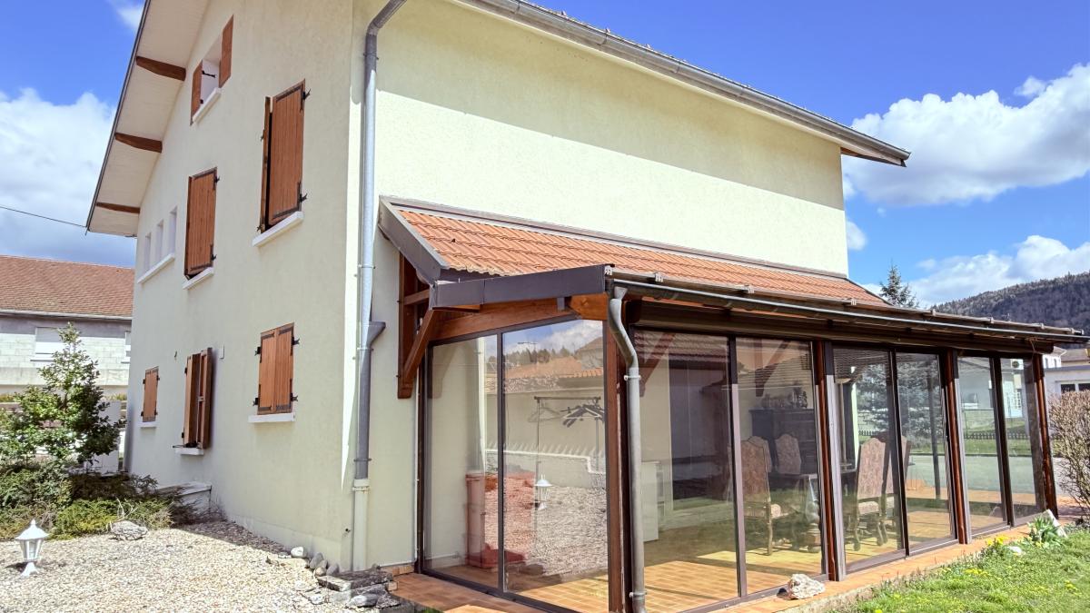 Bellignat, À proximité immédiate du centre-ville, charmante maison individuelle d’environ 140 m² habitables, implantée sur un beau terrain plat et entièrement clos de 984 m².